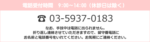 手技中は電話に出られないことがありますので、時間をおいて再度お掛け直しいただくようお願いいたします。